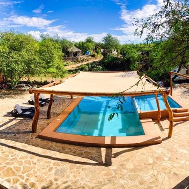 Nuestra alberca es el lugar perfecto para relajarte después de un día lleno de actividades emocionantes. Ven con tu familia y amigos a disfrutar de un chapuzón en un ambiente seguro y agradable. También puedes disfrutar de un delicioso coctel o bebida fría en nuestro bar junto a la piscina. ¡Te esperamos en Cabañas "El Triunfo" para disfrutar de un día inolvidable en nuestra alberca!